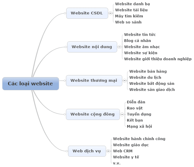 Về cơ chế hoạt động, có thể chia các website thành những loại sau: