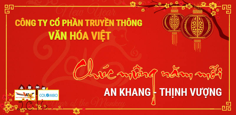 Nhân dịp tết Bính Thân 2016, BGĐ Công ty Cổ phần Truyền thông Văn Hóa Việt xin gửi lời cảm ơn chân thành và kính chúc Quý khách hàng, Qúy Đối tác, CBCNV công ty cùng gia đình có một năm mới An Khang – Thịnh Vượng, Vạn Sự - Như Ý.