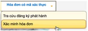 Trang thông tin điện tử của Tổng cục Thuế tại địa chỉ: http://tracuuhoadon.gdt.gov.vn, sau đó chọn mục "Hóa đơn có mã xác thực", chọn mục "Xác minh hóa đơn".