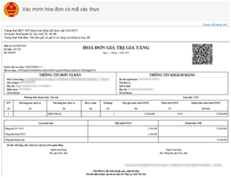 Hóa đơn điện tử có mã xác thực của cơ quan thuế
