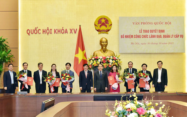 Tại buổi lễ, Văn phòng Quốc hội đã công bố các quyết định bổ nhiệm: ông Nguyễn Duy Tiến giữ chức Vụ trưởng Vụ Pháp luật từ ngày 1/11/2021; bà Phan Thị Thùy Linh giữ chức Vụ trưởng Vụ Tổng hợp từ ngày 1/11/2021; bà Hoàng Thị Lan Nhung giữ chức Vụ trưởng Vụ Thông tin từ ngày 1/10/2021;