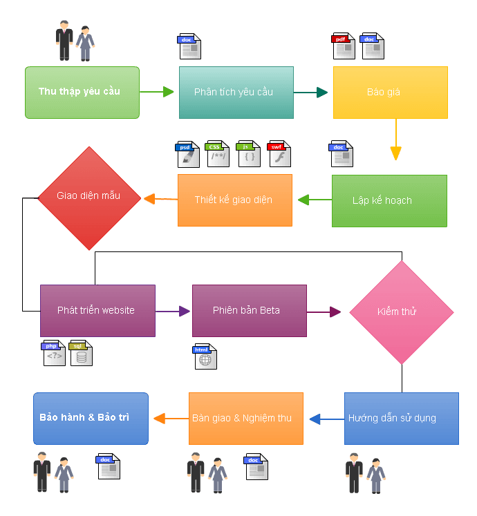 Với hơn 8 năm kinh nghiệm làm việc với các đối tác có nhu cầu thiết kế web, sau đây là quy trình mà chúng tôi đã đúc kết lại phù hợp với hầu hết quy mô và tổ chức của các cá nhân, doanh nghiệp, tổ chức hiện tại: