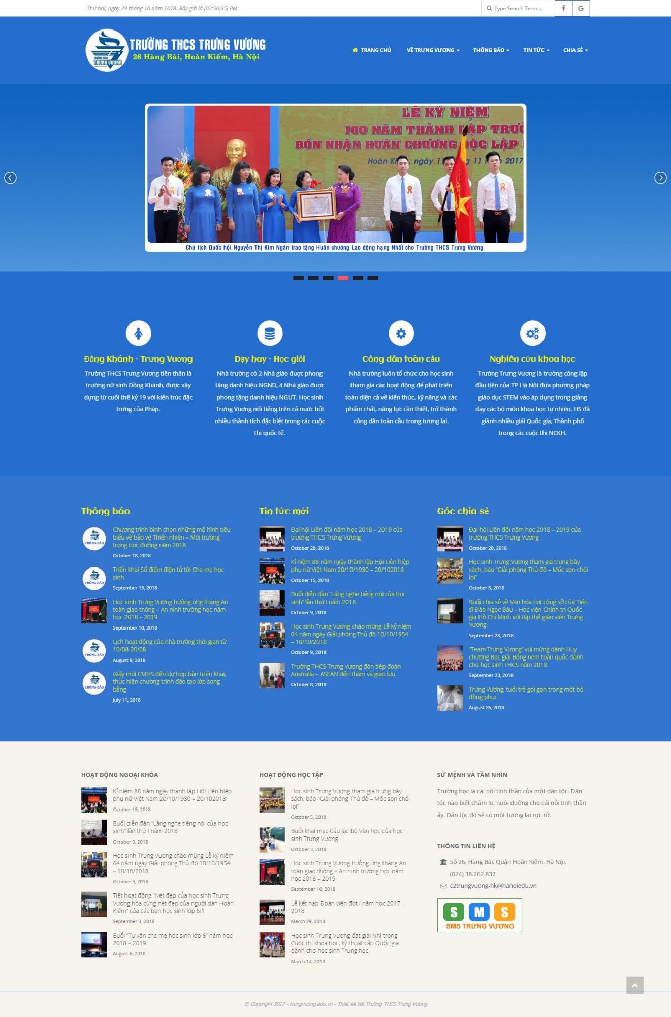 + Tổng hợp các tin tức mới nhất, thông báo, kế hoạch hoạt động của nhà trường.