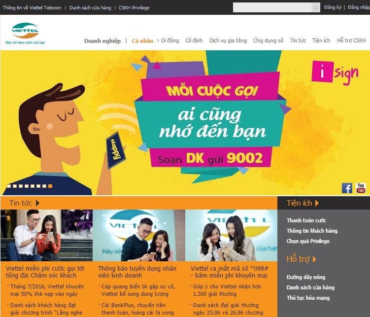 Phiên bản 1 của cổng thông tin điện tử Viettel.vn